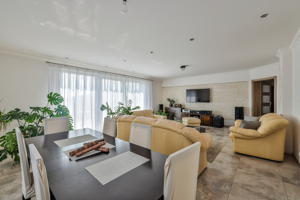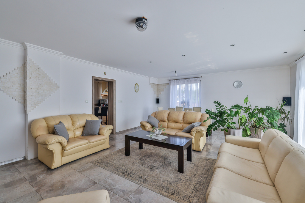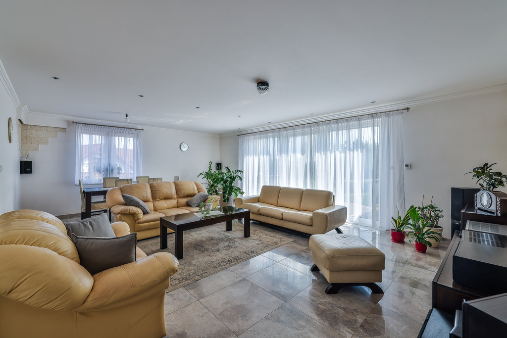 -salon z wyjściem na taras i ogród