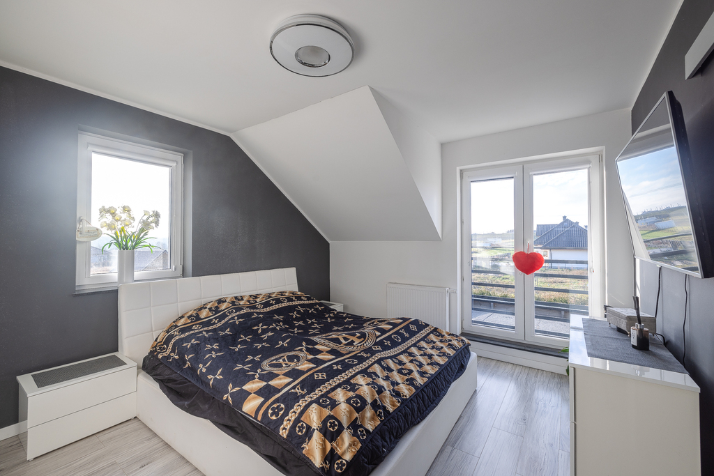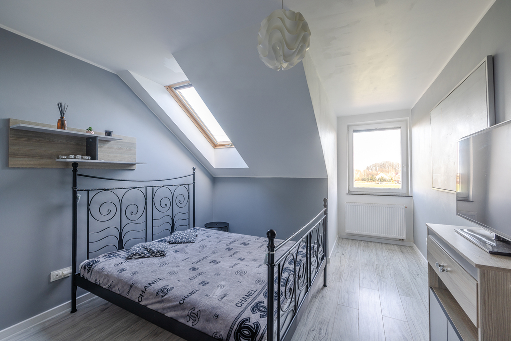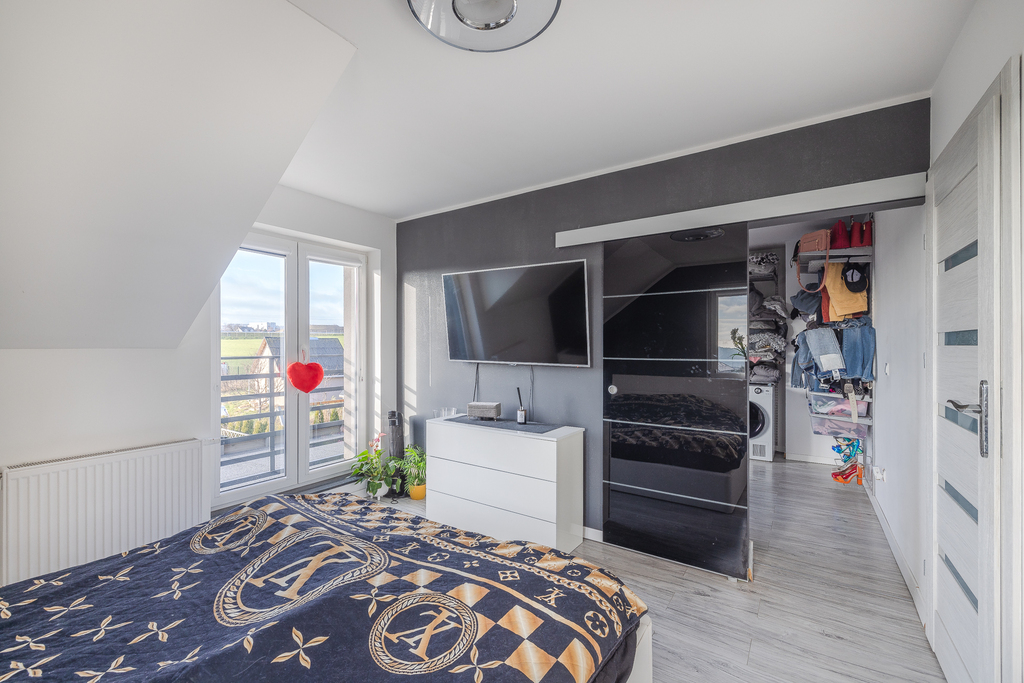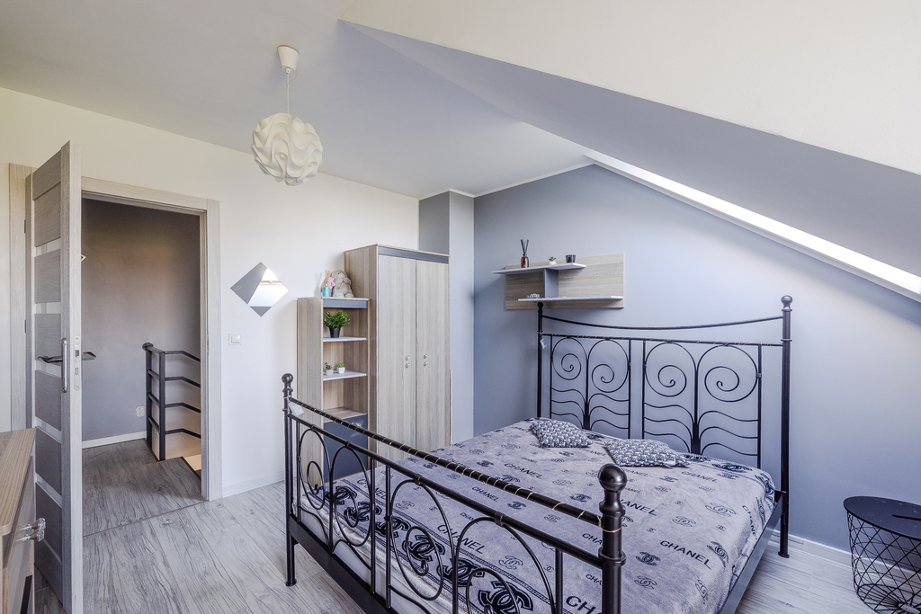 Dodatkowo na piętrze istnieje możliwość stworzenia dużego tarasu, co stanowi atrakcyjny potencjał na przyszłość.