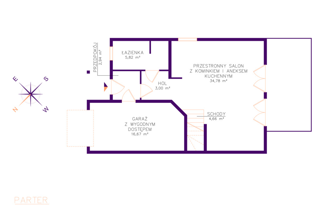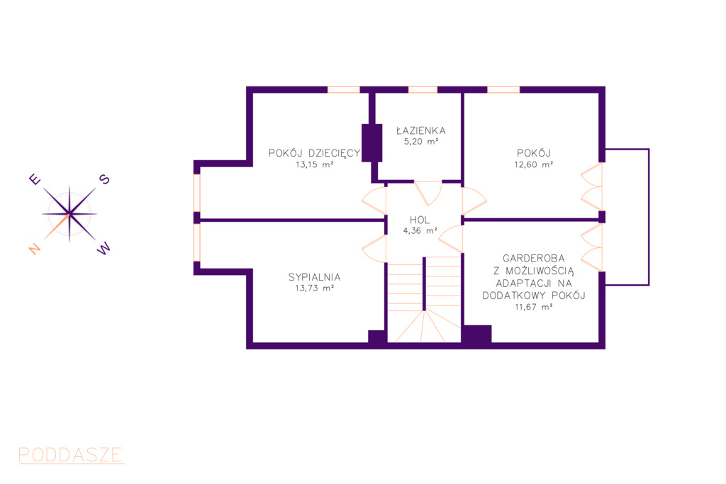 - Garderoba z możliwością adaptacji na dodatkowy pokój. 11,67 m2