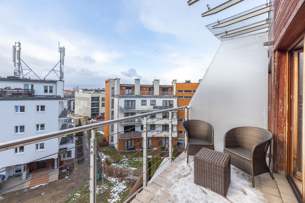 • Ostatnie piętro – poczucie prywatności, widok na okolicę, brak sąsiadów nad głową.