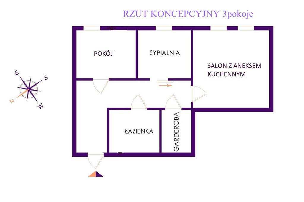 Istnieje możliwość aranżacji salonu z aneksem kuchennym i uzyskania 3 pokoi (RZUT KONCEPCYJNY DOŁĄCZONY W OFERCIE)