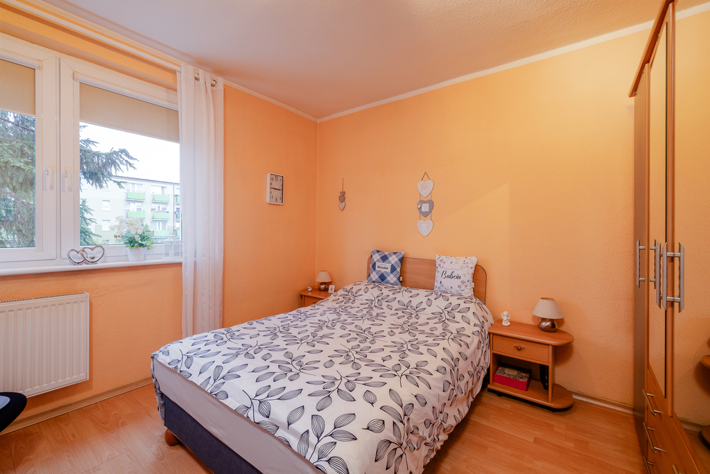 •Sypialnia – przytulna, cicha, z miejscem na pojemną szafę.