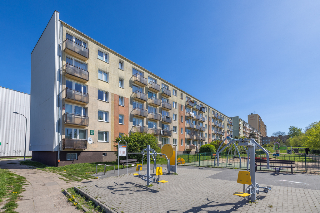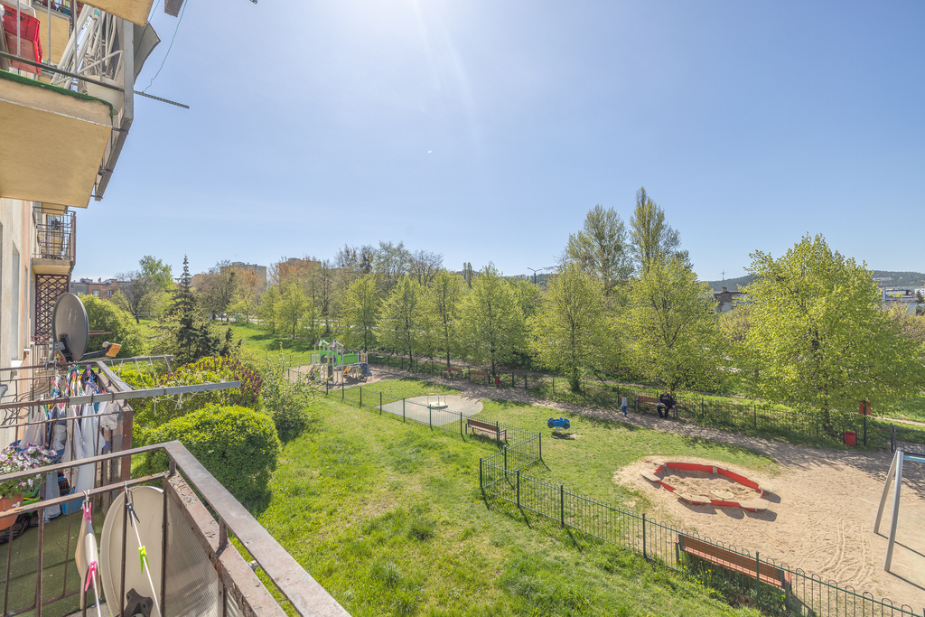 2-pokojowe mieszkanie o powierzchni 44,66 m², zlokalizowane na 1. piętrze w zadbanym budynku z wielkiej płyty w Gdyni Chyloni.