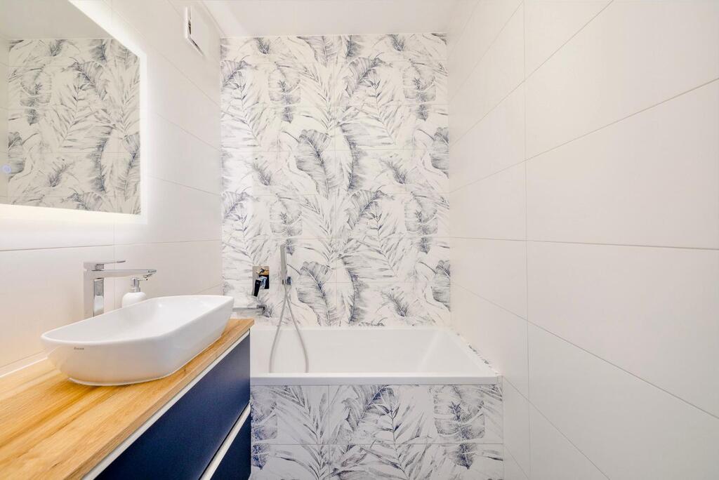 Kuchnia na wymiar z lakierowanymi frontami, stylowa łazienka, wodoodporne panele o wysokiej klasie ścieralności oraz nowoczesna glazura.