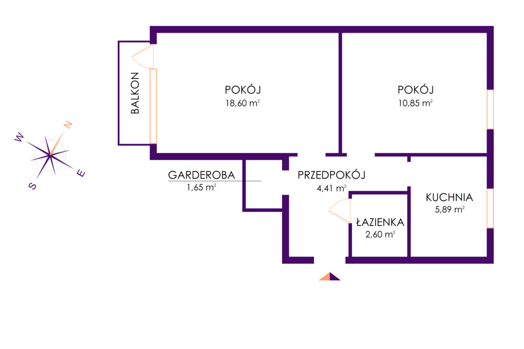 • Układ: 2 pokoje, kuchnia, łazienka, przedpokój