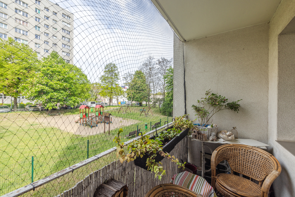 W mieszkaniu wymieniono okna na PCV, ekspozycja wschód–zachód gwarantuje dużo naturalnego światła.