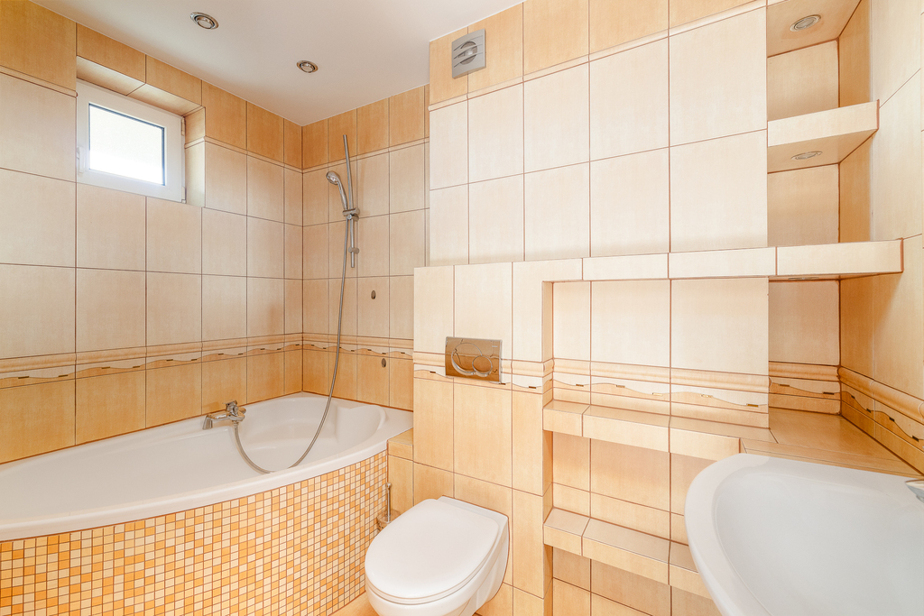 -Łazienka: narożna wanna, ogrzewanie podłogowe – komfort przez cały rok.