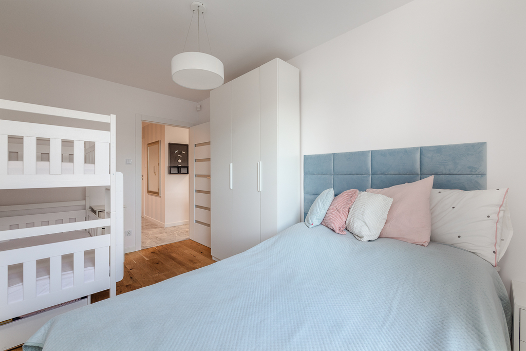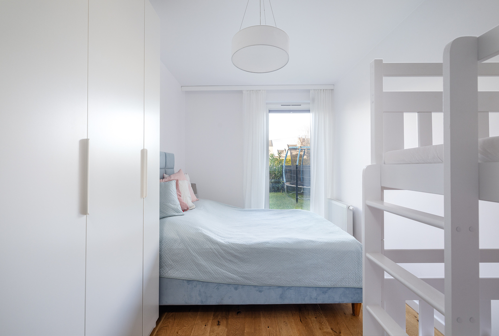 - Sypialnia – przytulna, z miejscem na duże łóżko i szafę.