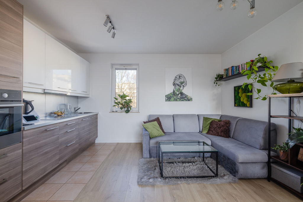 - salon z aneksem kuchennym z wyjściem na komfortowy balkon,