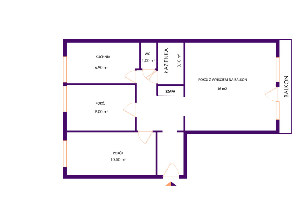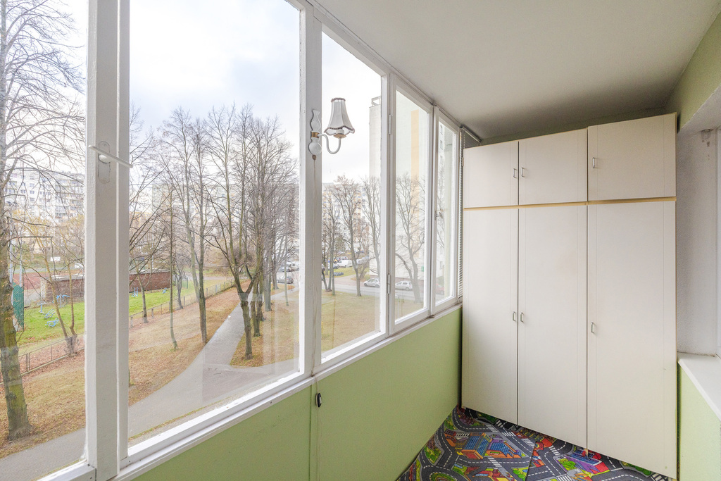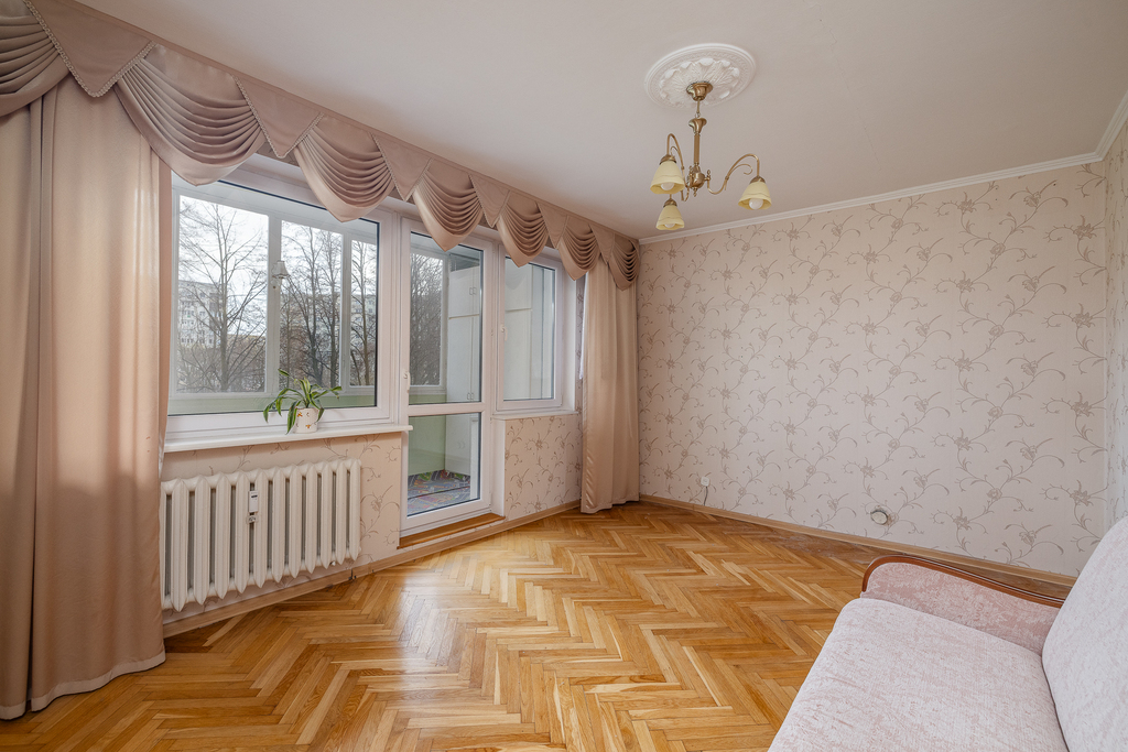 Składa się z przestronnego pokoju z balkonem, dwóch sypialni, łazienki, WC, kuchni i przedpokoju.