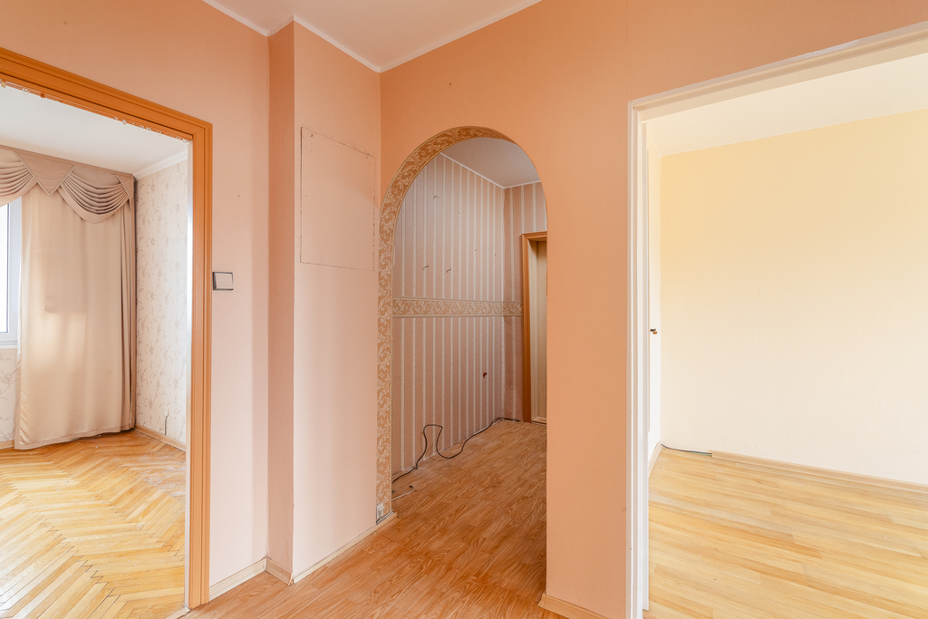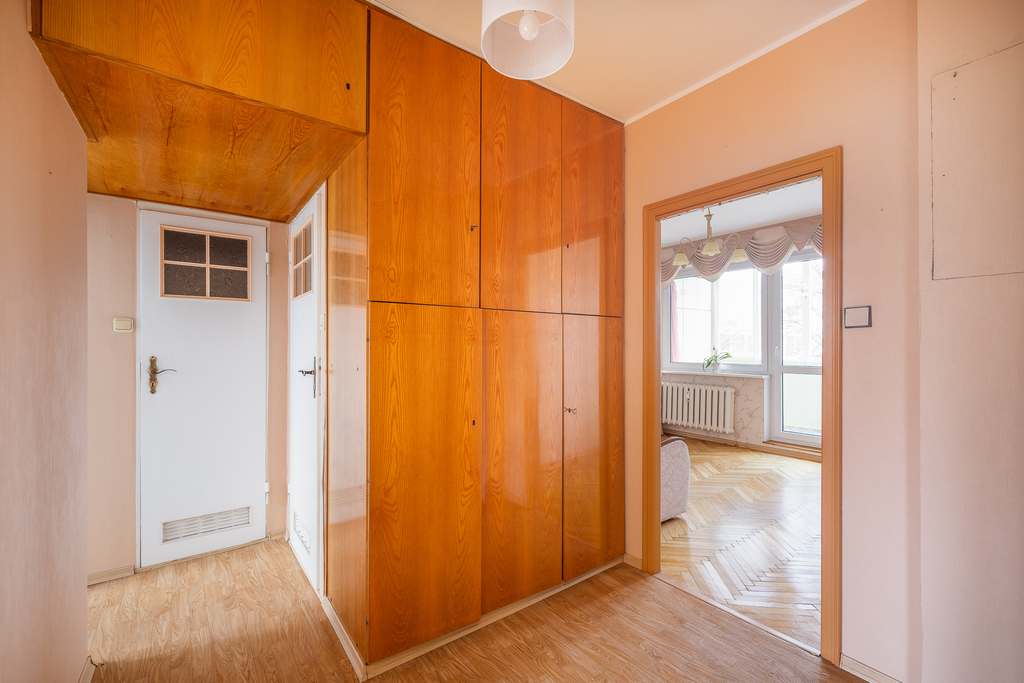 3 pokojowe mieszkanie z dużym potencjałem. Łączny metraż mieszkalny to 56,1m2.