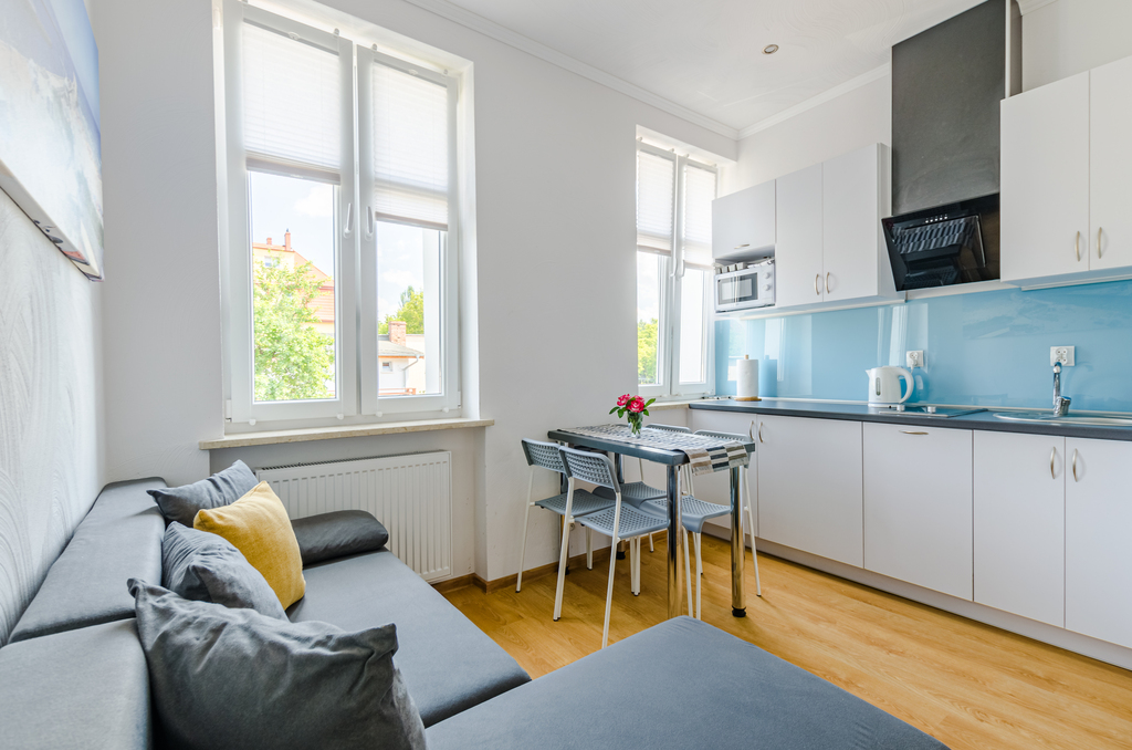 02Oferujemy komfortową kawalerkę z aneksem kuchennym o powierzchni ponad 26m2 zlokalizowane w wyremontowanej kamienicy w centrum Ustki – jednej z najbardziej cenionych lokalizacji nad polskim morzem.