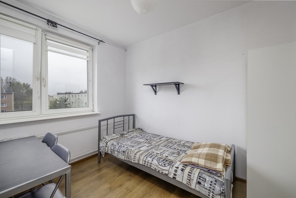 Mieszkanie znajduje się na czwartym piętrze czteropiętrowego budynku z lat 70., z zadbaną klatką schodową i spokojnym sąsiedztwem.