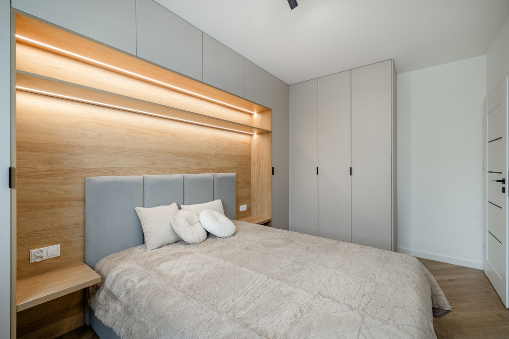 - sypialni z zabudową od stolarza oraz komfortowym łóżkiem,