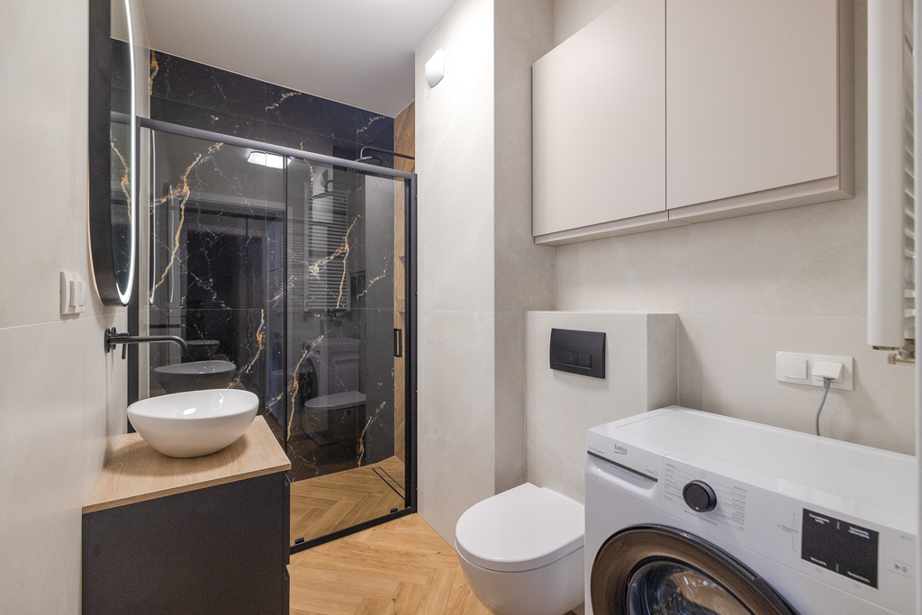 - łazienki z prysznicem i pralką,