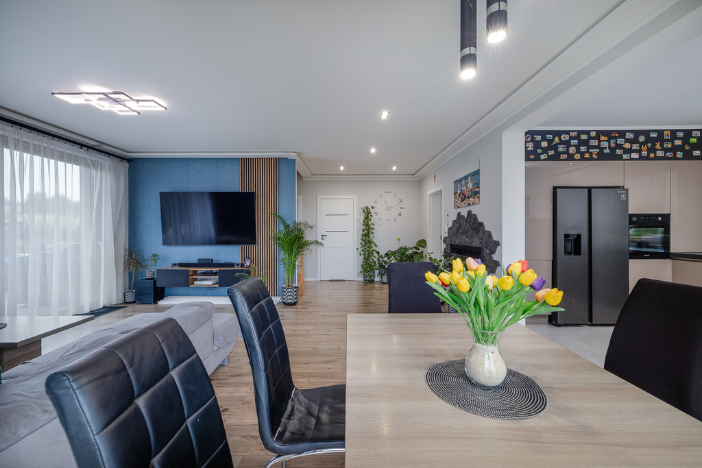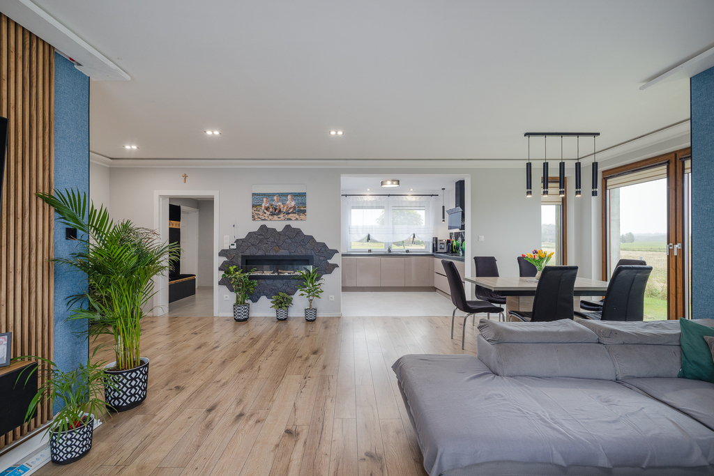 Nowoczesny układ pomieszczeń i duże przeszklenia zapewniające naturalne światło