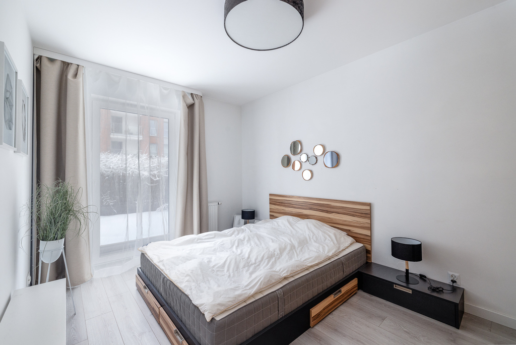 - ustawnej i przytulnej sypialni z dużą szafą