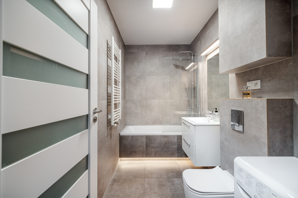 - eleganckiej łazienki z wanną z funkcją prysznica.