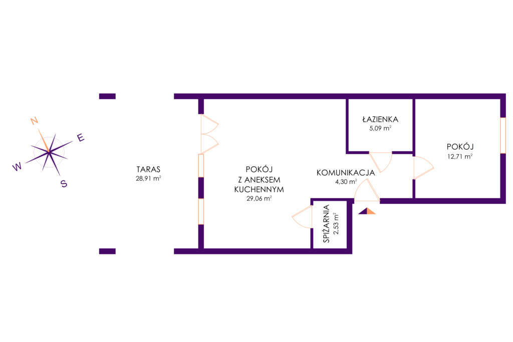 •funkcjonalny układ – oddzielna sypialnia + przestronna strefa dzienna