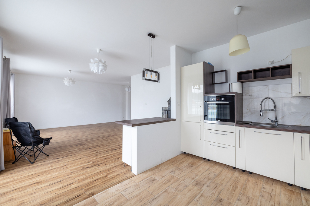 Jasne wnętrza, duże przeszklenia oraz otwarta przestrzeń dzienna tworzą atmosferę swobody i harmonii.