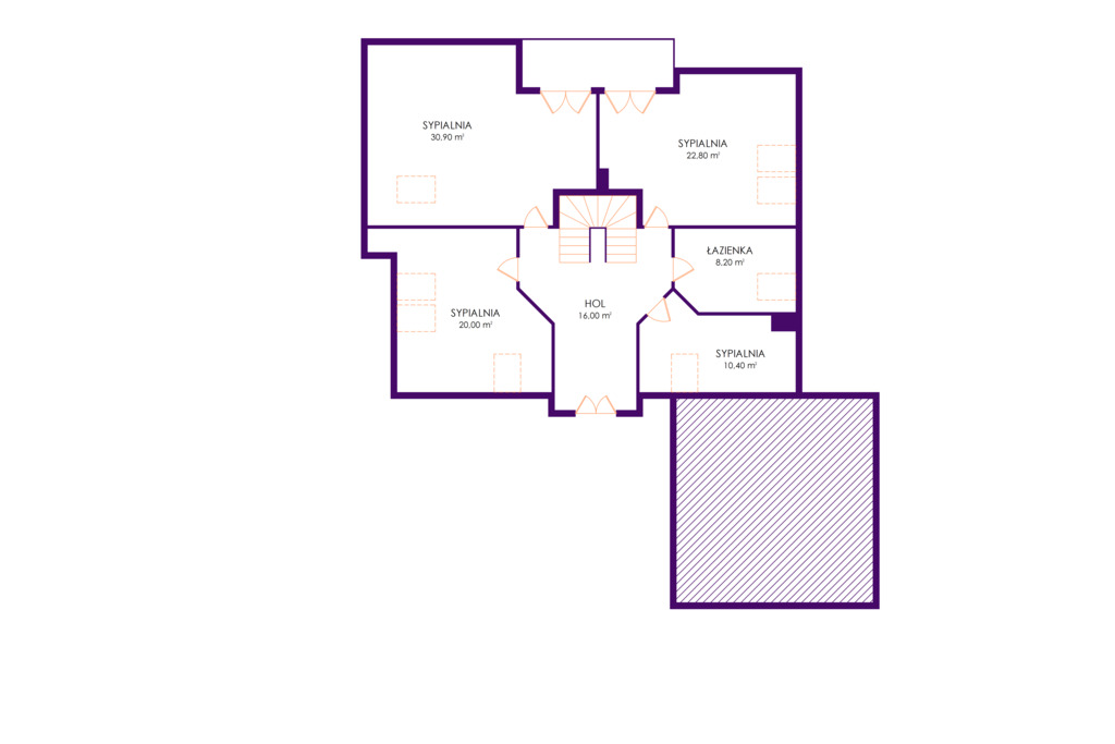 •cztery sypialnie: 30,9 m², 22,8 m², 20 m², 10,4 m²