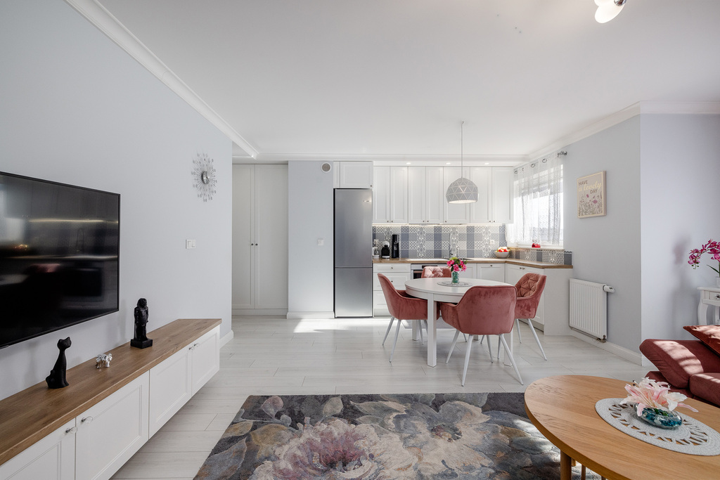 To wyjątkowe mieszkanie łączy nowoczesny design, komfort i spokój – idealne dla pary, rodziny z dzieckiem lub osób pracujących zdalnie.